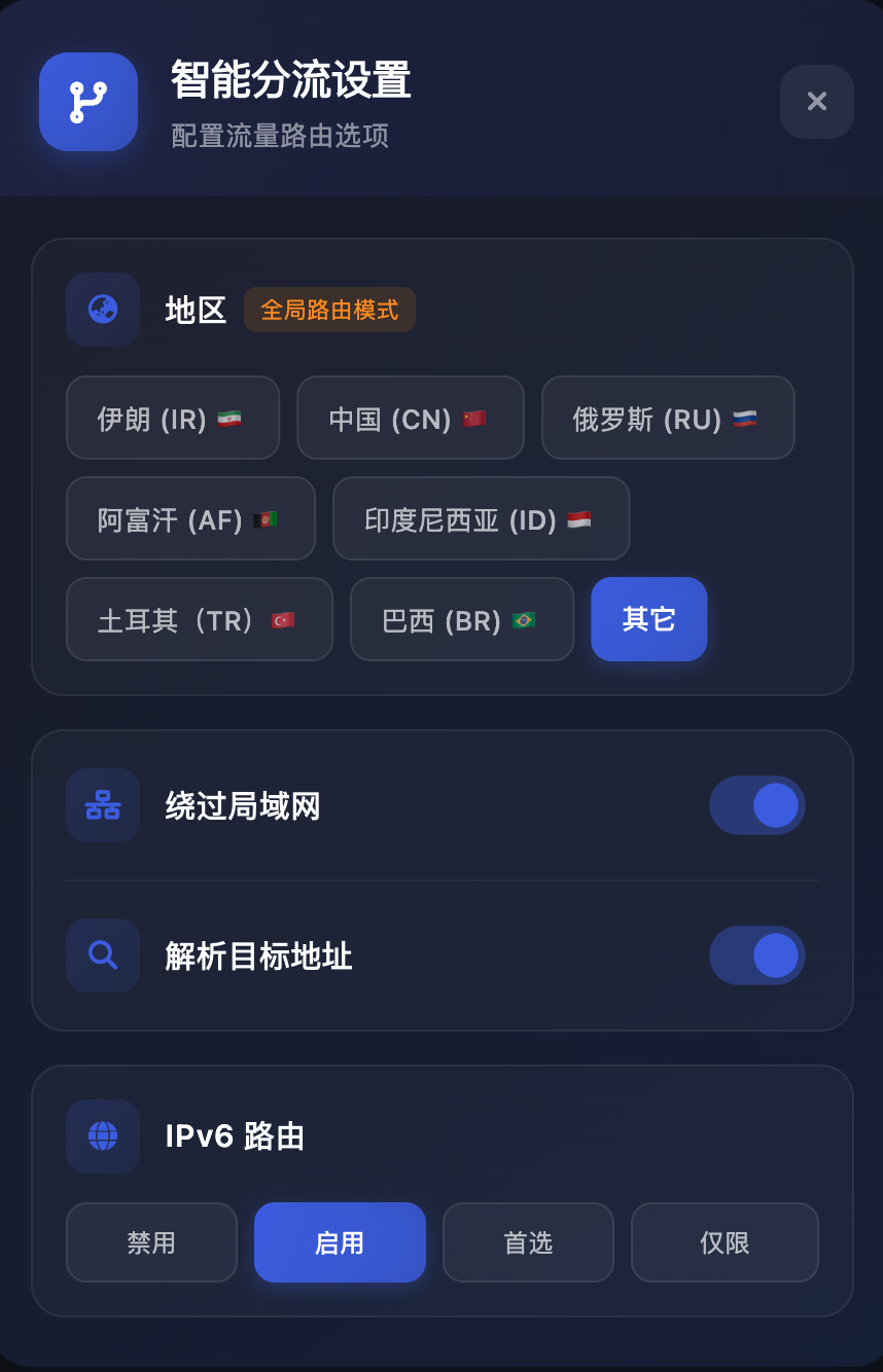 A: 住宅 IP 的路由作用域支持两种工作模式: 全局 和 设备。