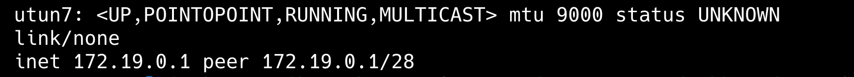 然后可在终端看见创建的虚拟网卡,此时全局模式设置完成。