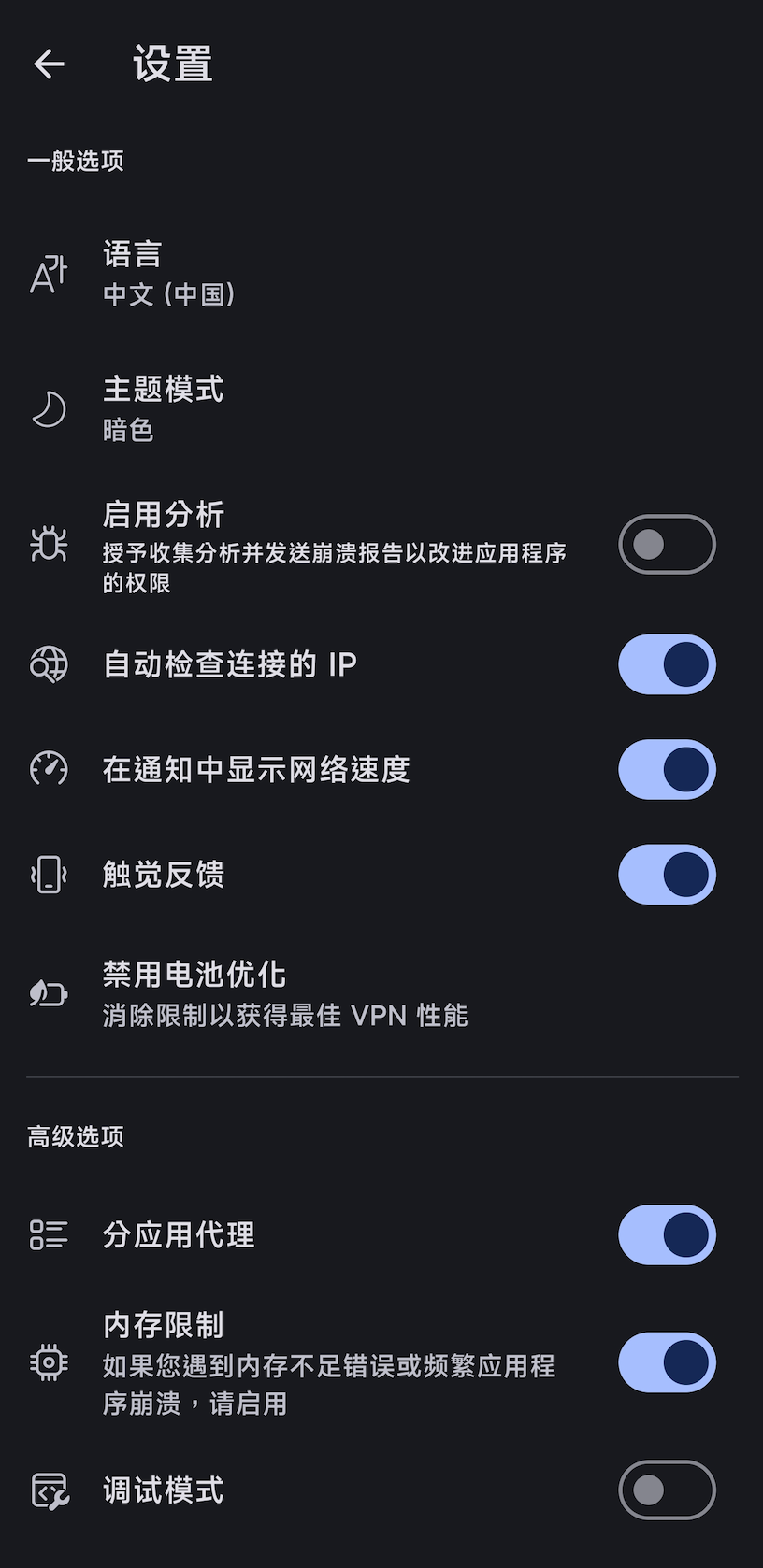 - 分应用代理: 关闭(如需按应用分流再开启)